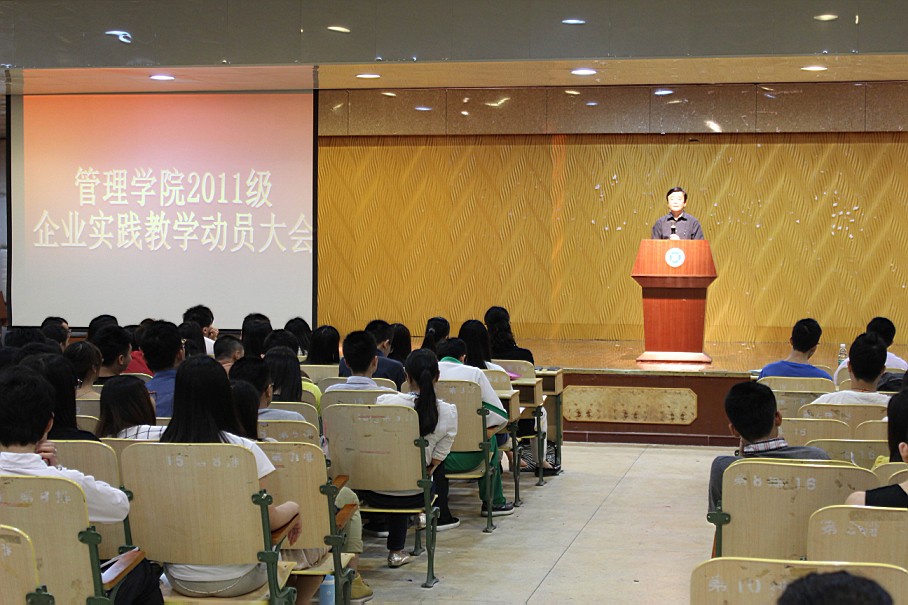 在本次动员大会上,管理学院院长李新庚从企业实践教学的目的、意义和重要性出发,启发2011级本科学生重视企业实践教学,认真参与,积累实践经验。他强调,企业实践教学是实现应用技术大学高层次应用技术技能人才培养的关键教学环节,“校企合作、工学结合”是应用技术大学的人才培养模式,学生在完成通识教育课程、专业基础课程和专业课程的学习,掌握足够的基础知识和专业知识,具备基本实践能力的基础上,到企业现场进行的实践性教学活动,能够尽快提高学生的动手能力,将实习与企业工作结合,培养发现和提出问题的能力,掌握分析和解决实际问题的基本思路和方法,增强职业素质,提高就业竞争力,实现学习与就业的紧密对接。