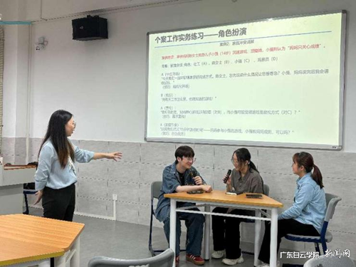 为全面提升社会工作专业学生实务能力、推动产教融合,4月18日,广东白云学院社会工作系创新教学模式,特邀行业资深督导、广州市和合家事中心项目经理郭欣欣走进课堂,开展了一场极具深度与实践性的《社会工作综合实务能力》教学实践活动。