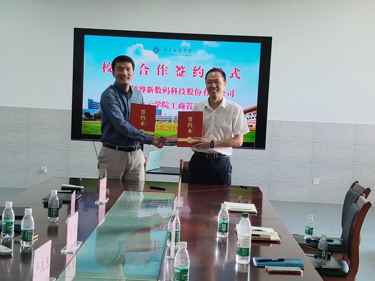 经过充分的沟通与交流,双方达成了高度共识。在与会人员的共同见证下,汪义军副院长与马作仁总经理分别代表广东白云学院工商管理学院和智慧树网,正式签署了校企合作协议。