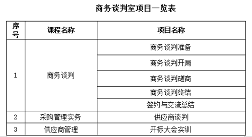 商务礼谈判室项目内容对应课程及课程模块如表所示: