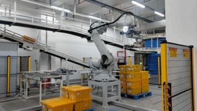 在大参林顺德仓现任代理经理陈志鹏和大参林顺德仓项目负责人林启航的引导下,调研团队沿着“收货-存储-分拣-出库”的完整物流动线,将理论痛点与现场实践逐一验证。大参林顺德仓构建了由连续式提升机、螺旋提升机与高速摆臂机组成的立体垂直物流通道,实现了货物在收货、存储、分拣各楼层间的自动、快速、精准流转,打破了传统楼库的动线隔阂。在易碎品和异形件处理区,以“高精度视觉识别+柔性机器人”的组合确保了操作的轻柔与准确,复核正确率达99.99%以上;在标准件高速分拣区,交叉带分拣系统能以每小时超6500箱的速率运行,并智能采用“一单多件”的播撒模式,大幅提升出库效率。小黄人机器人根据供包人员下达系统的复核完成指令,在分拣魔毯上灵活避让、快速行进,把中药订单商品准确送达指定格口,形成了高效、柔性的“货到人”分拣矩阵。