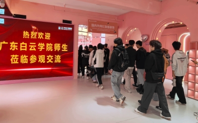 在益云科技党支部书记、人力资源总监肖昭栋的陪同下,师生们在益云选品中心店长曾彩婷的引导下,实地探访了位于5至6层的核心展厅。展厅内陈列超10万款美妆单品,并设有330个专业直播间,集中展示了“AI选品系统+跨境云仓”的数字化闭环生态。学生近距离观摩智能客服处理全球订单的实时流程,深入理解从原料采购到终端零售的全链路品控体系。益云选品中心作为美妆跨境出海的关键枢纽,已与1215家企业合作,涵盖2050个品牌,日均订单处理量突破10万单,凸显了白云区美妆产业的集聚效应与创新活力。