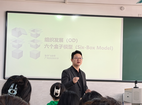 张学飞凭借其多年在企业工作及企业咨询领域的丰富经验,将理论与实际案例完美融合,为同学们带来了生动而富有深度的讲解。课堂上,张老师首先深入剖析了组织诊断模型六个盒子的内涵。他详细阐述了这六个盒子 —— 理念、结构、流程、人员、资源和氛围 —— 如何从不同维度全面诊断一个组织的运行状况。通过实际企业的案例分析,将抽象的理论具象化,让同学们能够轻松理解并掌握其应用方法,使同学们清晰地看到组织内部各要素之间的相互关系与作用,为后续的学习和实践奠定了坚实基础。