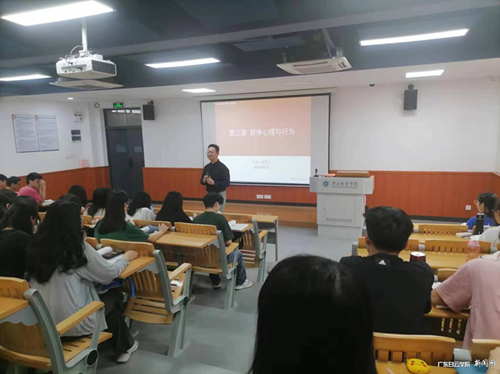 张学飞总经理在授课的过程中,不仅对组织实践情境中的群体行为管理进行讲解,同时结合学生实际生活与学习情境,进行了热烈的互动,穿插了许多生动有趣的实际案例。同学们在欢声笑语中收益良多。最后,张学飞总经理也给同学们提出融入组织群体行为管理的经验与技巧,以便同学们在日后的实习中可以运用。