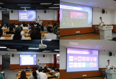 在嘉宾分享环节,杨总以“TikTok Shop头部卖家揭秘跨境电商新机遇”为题,从TikTok平台深度解读、变现渠道及模式解析、“我们出海 weabroad” 商业模式与价值阐释三个维度,系统剖析了TikTok 跨境电商的市场潜力、账号运营逻辑与个人IP打造路径。分享中,杨总结合自身运营的全美30万粉丝珠宝账号“Horan Young”的实战案例,以及助力多家企业成功“出海”的服务经验,生动展示了Tik Tok账号运营的创新玩法与行业新风向。针对同学们普遍关心的跨境物流仓储布局、海外售后服务保障等痛点问题,他结合实际案例逐一拆解,给出可落地的解决方案。杨总强调:“TikTok 不仅是海外社交平台,更是全球化贸易的新赛道。希望同学们积极投身TikTok实践,让中国优质商品走向全球市场,更要学会讲好中国品牌故事,打造具有国际影响力的自营品牌。”